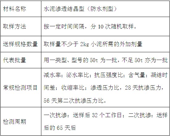 材料名稱:水泥滲透結晶型(防水劑型)